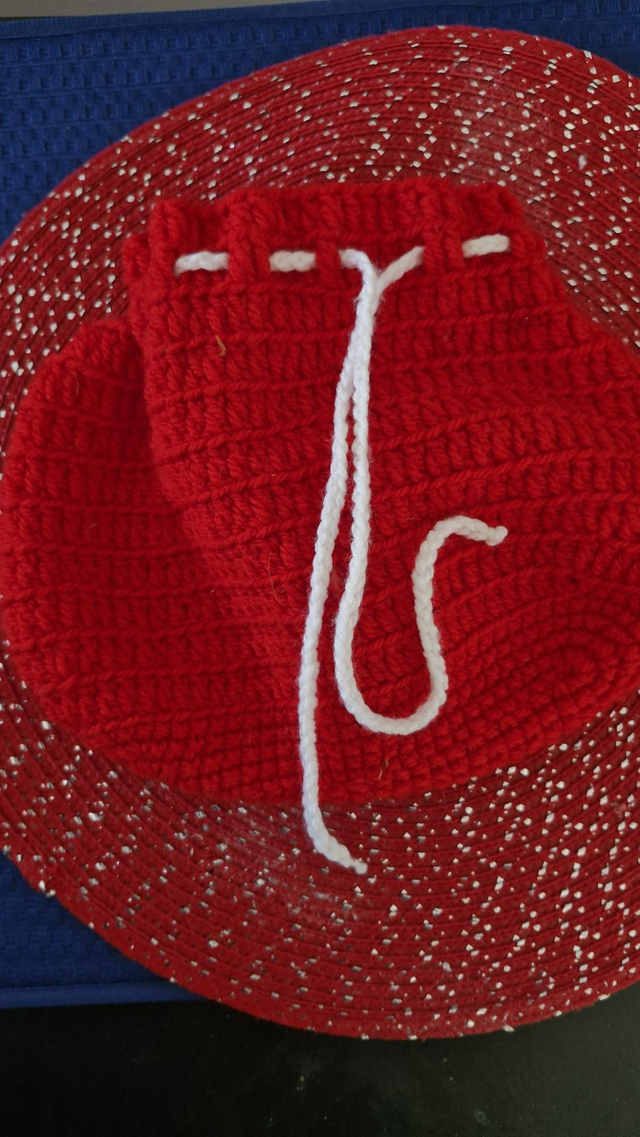 Pochon en crochet bleu vert et blanc
